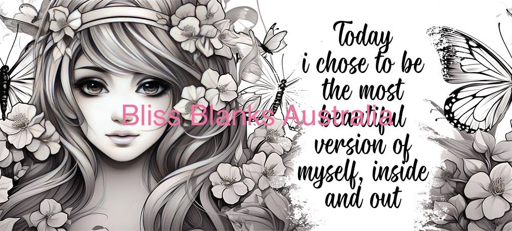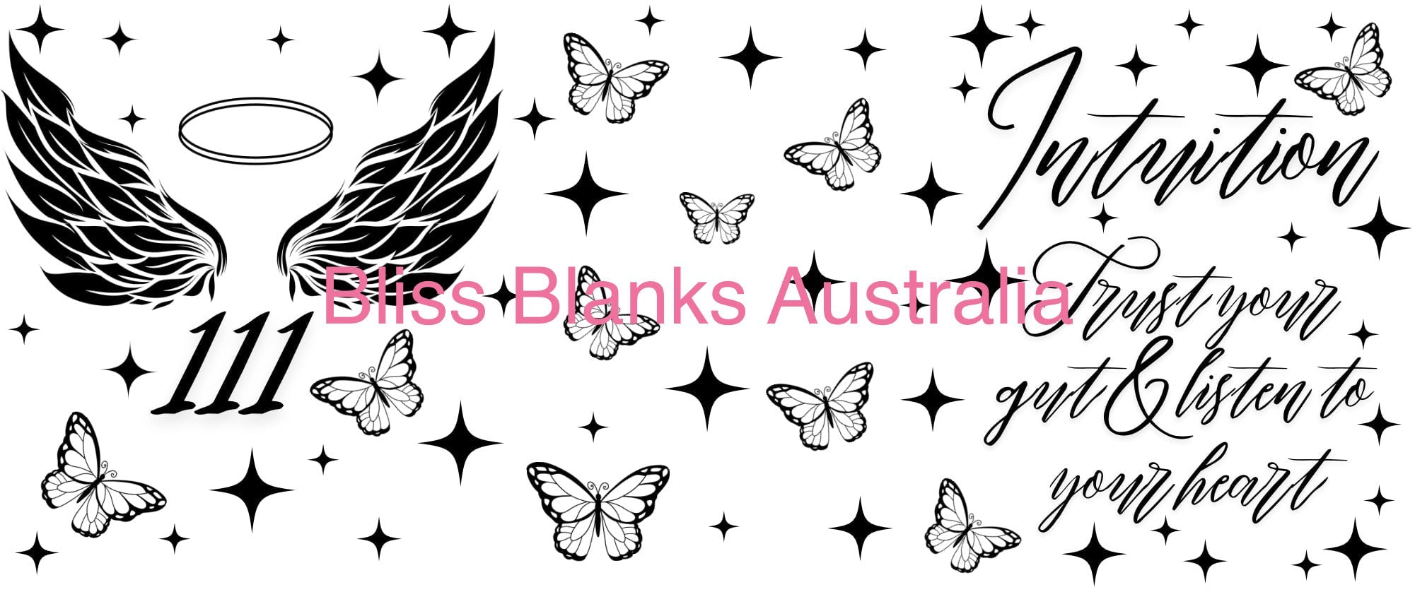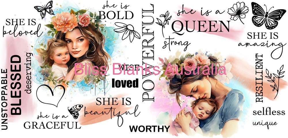 4. Line the transfer on the cup, ensuring the design is straight and positioned correctly. Once the design has been placed onto the cup and it sticks, there is no going back as the adhesive is extremely strong, and you CAN NOT peel it off to be re-positioned.
