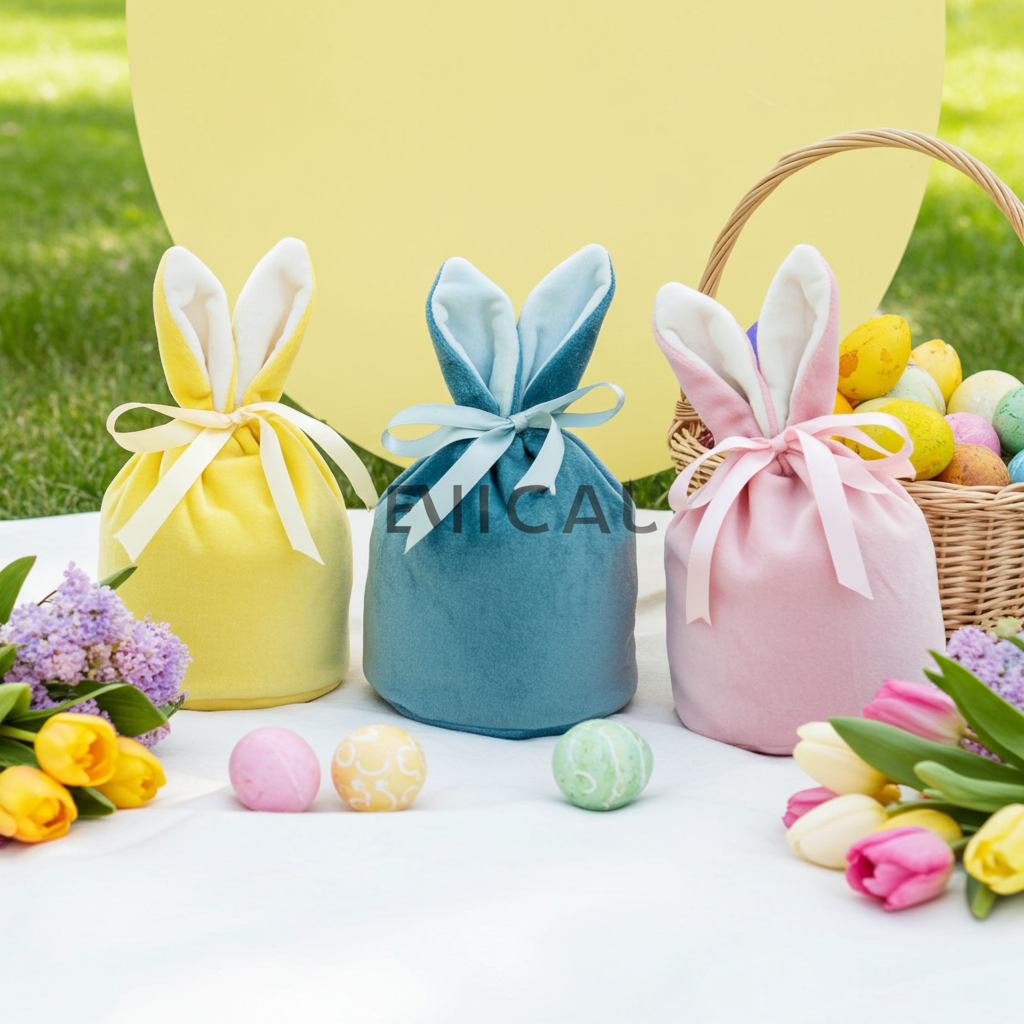 Our Velvet Easter Bunny Bags all have matching ribbon ties.