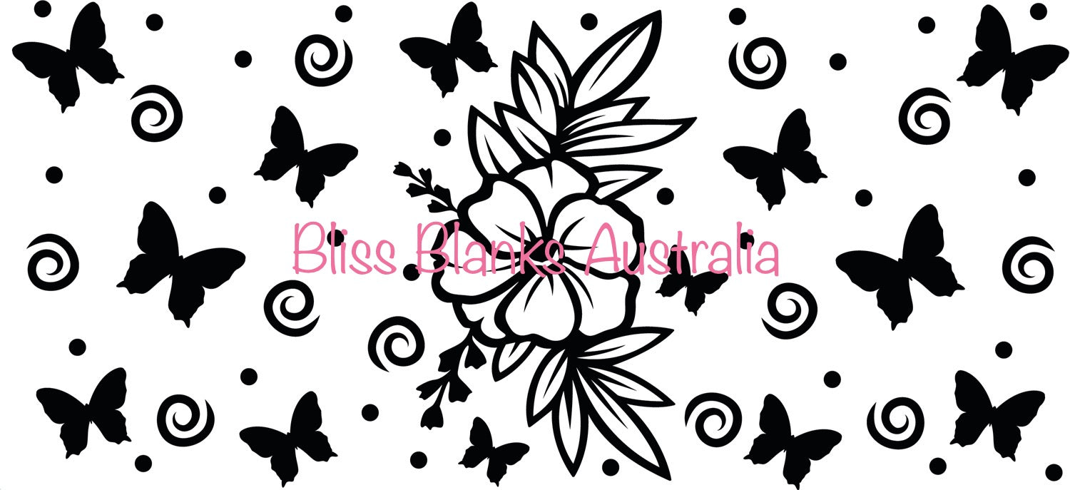 4. Line the transfer on the cup, ensuring the design is straight and positioned correctly. Once the design has been placed onto the cup and it sticks, there is no going back as the adhesive is extremely strong, and you CAN NOT peel it off to be re-positioned.